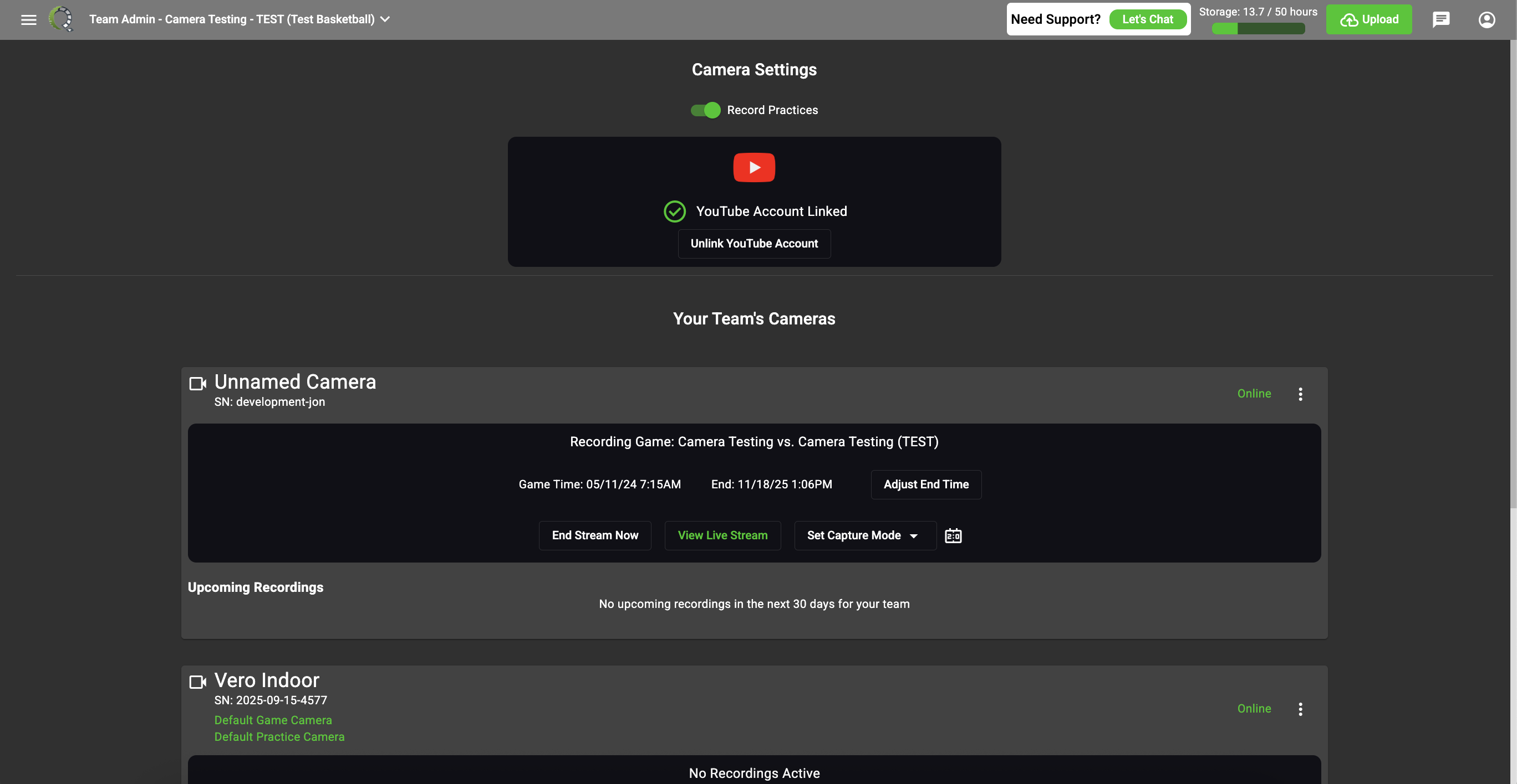 Once linked to YouTube, all future scheduled games will stream to your YouTube page. Practices will not stream to YouTube.